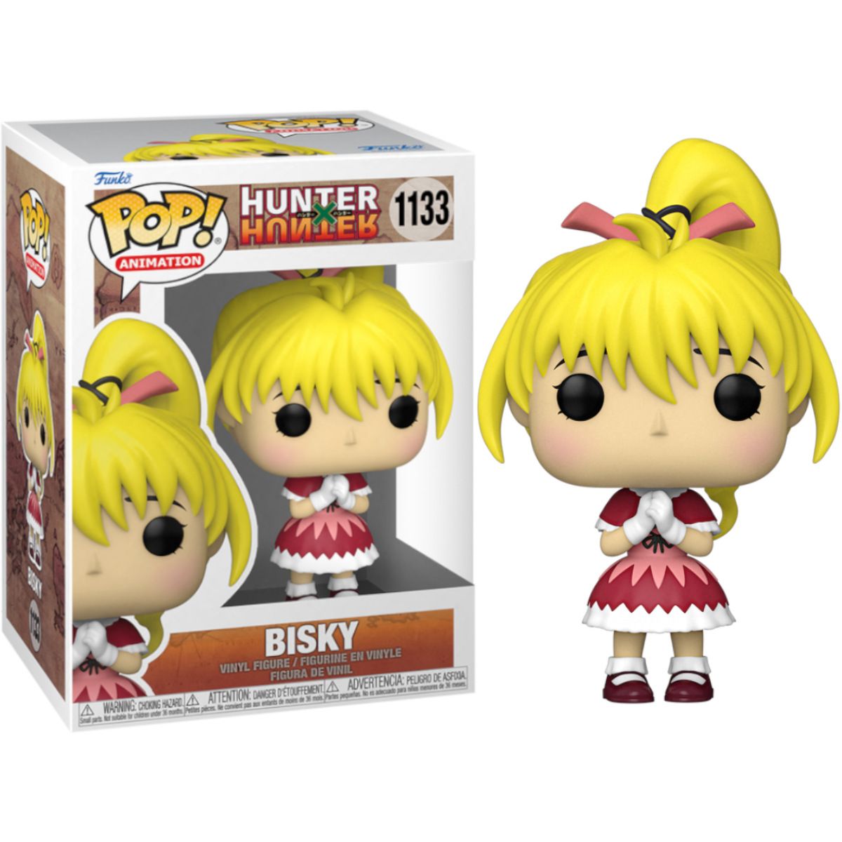 Bisky, do anime Hunter x Hunter, agora em versão Funko Pop! Esta personagem é uma Caçadora e uma mestra de Nen, que treina Gon e Killua em Greed Island. Ela é conhecida por sua aparência jovial, porém é uma guerreira poderosa e experiente.